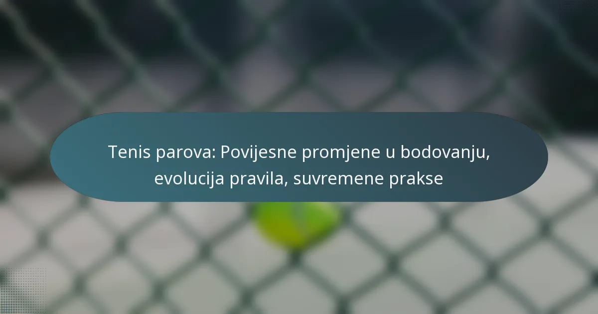 Tenis parova doživio je izvanrednu evoluciju u svom bodovanju i pravilima, odražavajući prilagodljivost sporta i potrebu za poboljšanim igranjem. Ključne promjene, poput uvođenja bodovanja bez prednosti i tajbrejka, transformirale su tradicionalne formate, čineći mečeve dinamičnijima i zanimljivijima. Razumijevanje ovih povijesnih promjena pruža vrijedne uvide u strategije i prakse koje definiraju moderni tenis parova.