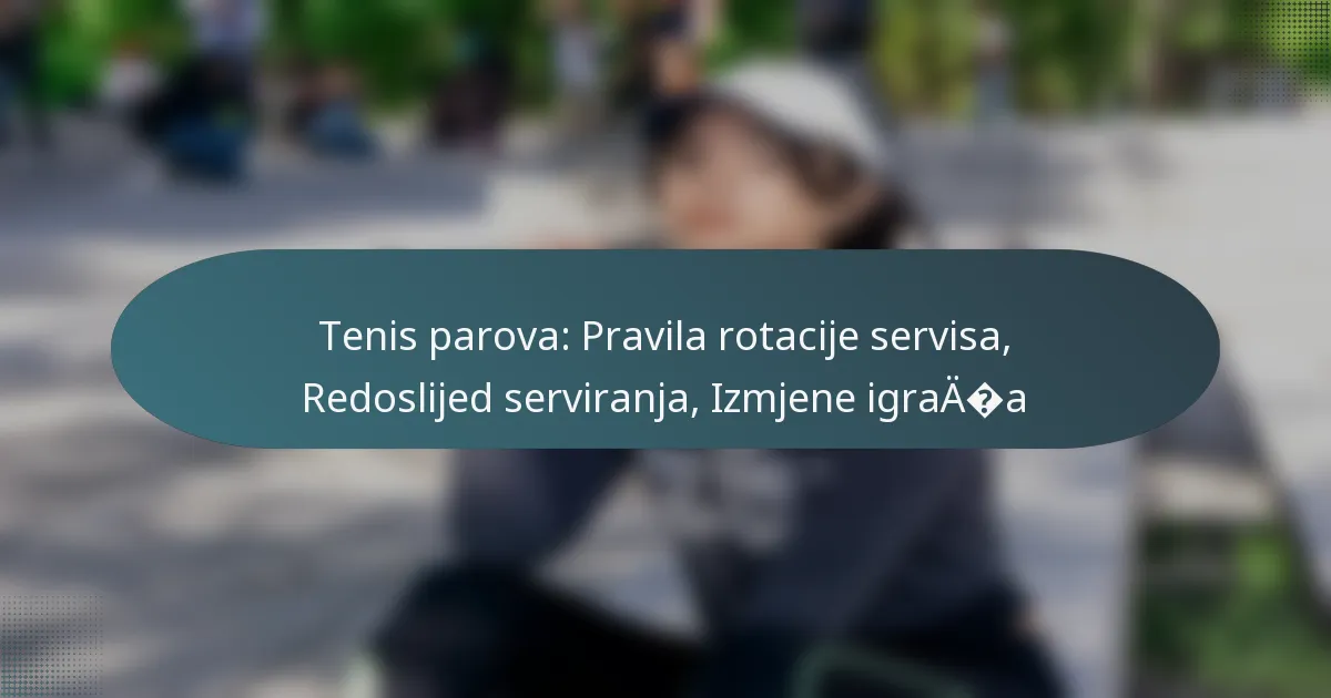 Tenis parova uključuje specifična pravila rotacije servisa koja osiguravaju pravednu raspodjelu prilika za servis među suigračima. Redoslijed servisa utvrđuje se prije meča i zahtijeva učinkovitu komunikaciju kako bi se održao tijekom igre. Igrači se izmjenjuju u serviranju prema unaprijed određenom redoslijedu, mijenjajući pozicije nakon svake igre kako bi se održala pravednost i strateška igra.